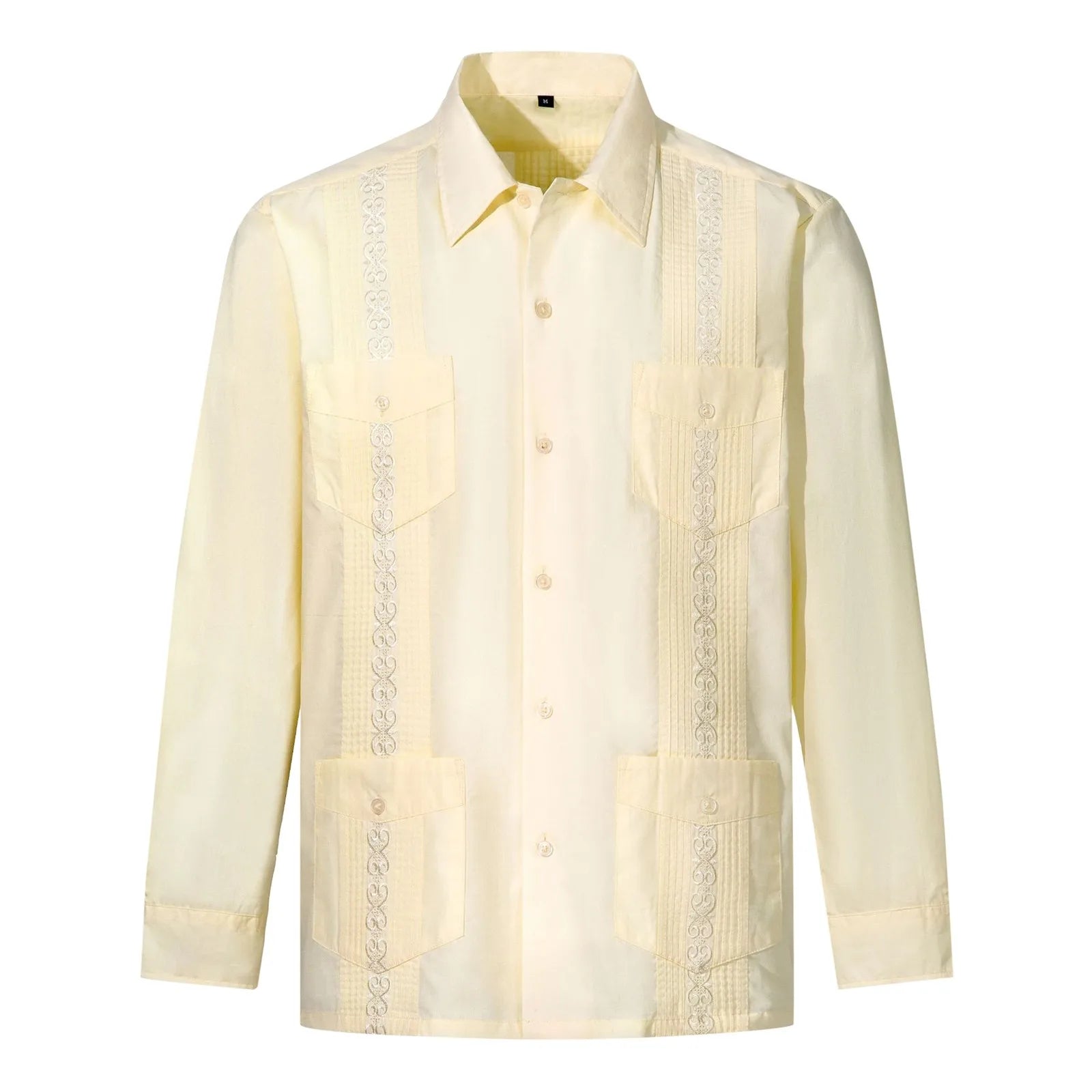 • Elegant Embroidered Solid Color Long Sleeve Shirt