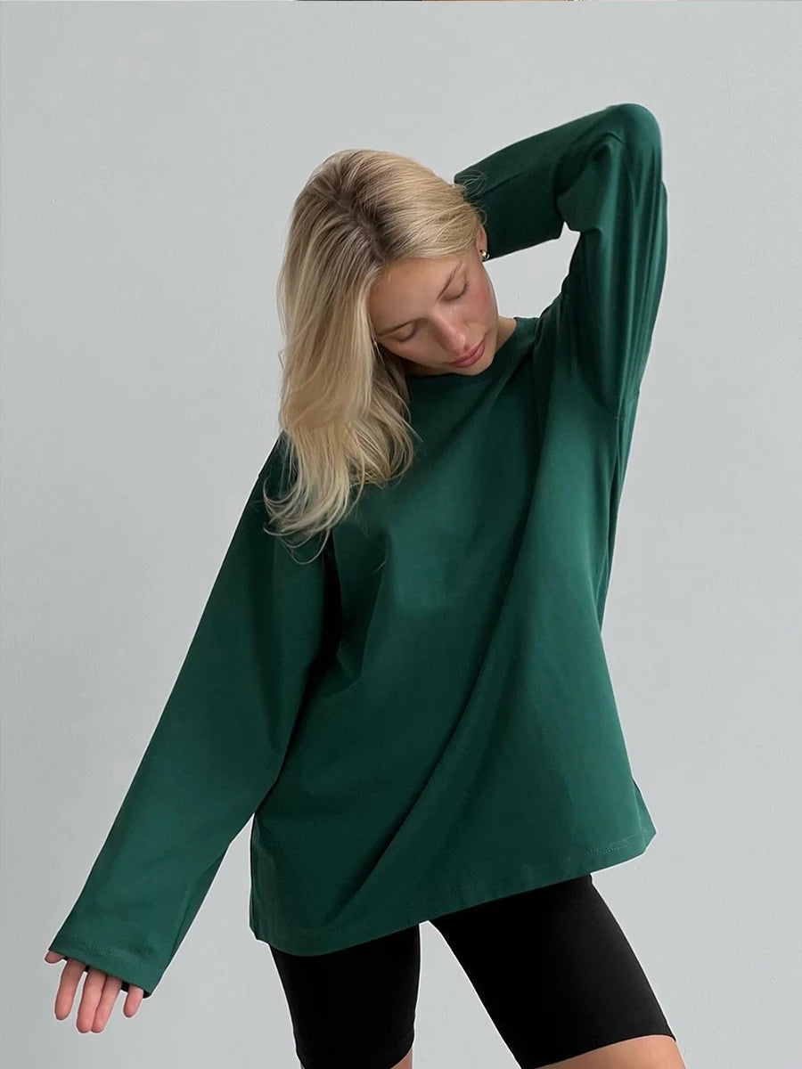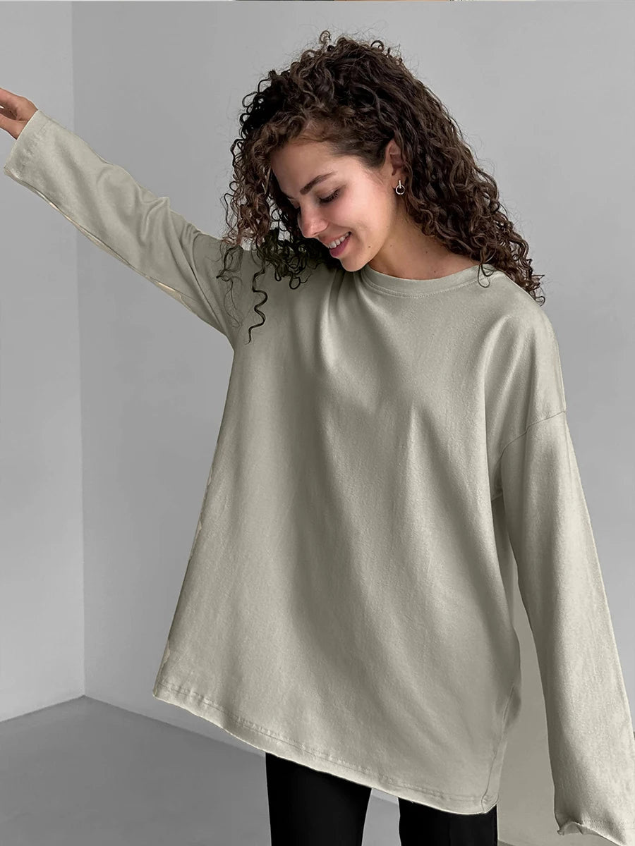Hirsionsan Oversized O-Neck T-Shirt – 100% Cotton Casual Chic Women’s Top