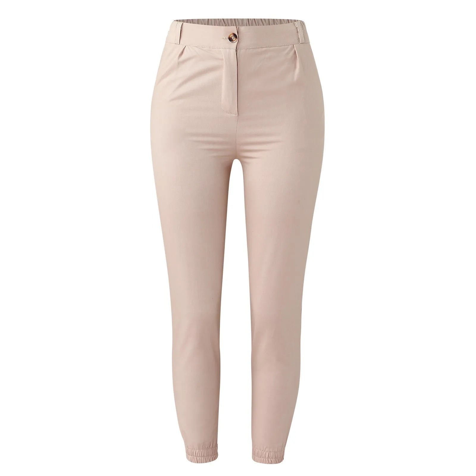 • Women High Waist Button Ankle-Tied Solid Color Pants